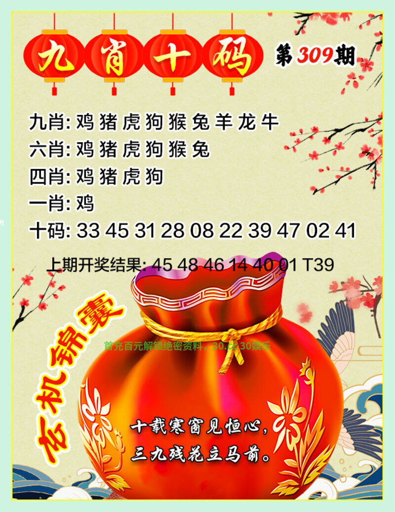 309期:复式连肖鼠蛇牛鸡马猴』中2